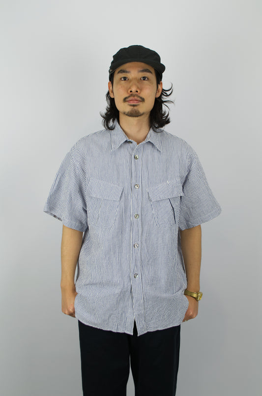 Fujito - Short Sleeve Fatigue Shirt, Navy Stripe