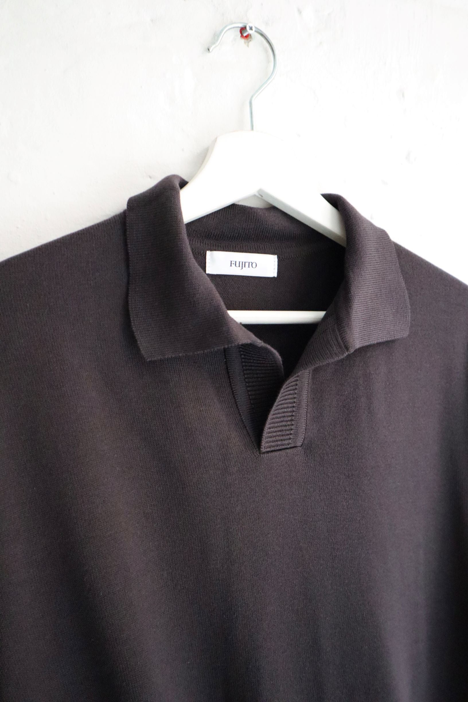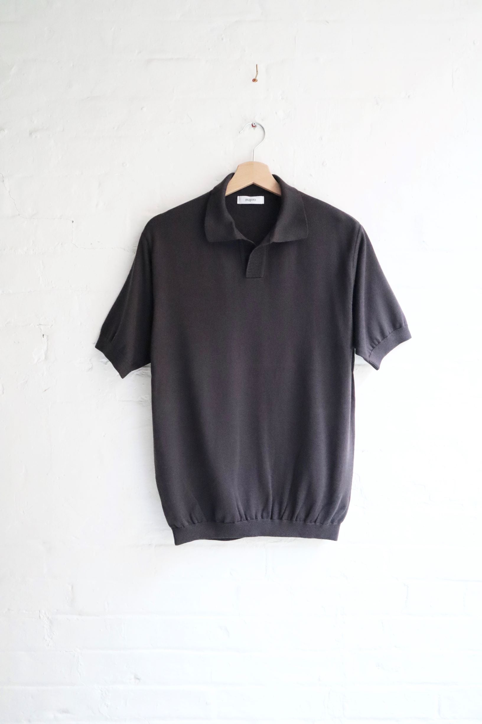 Fujito - Skipper Knit Polo. Charcoal