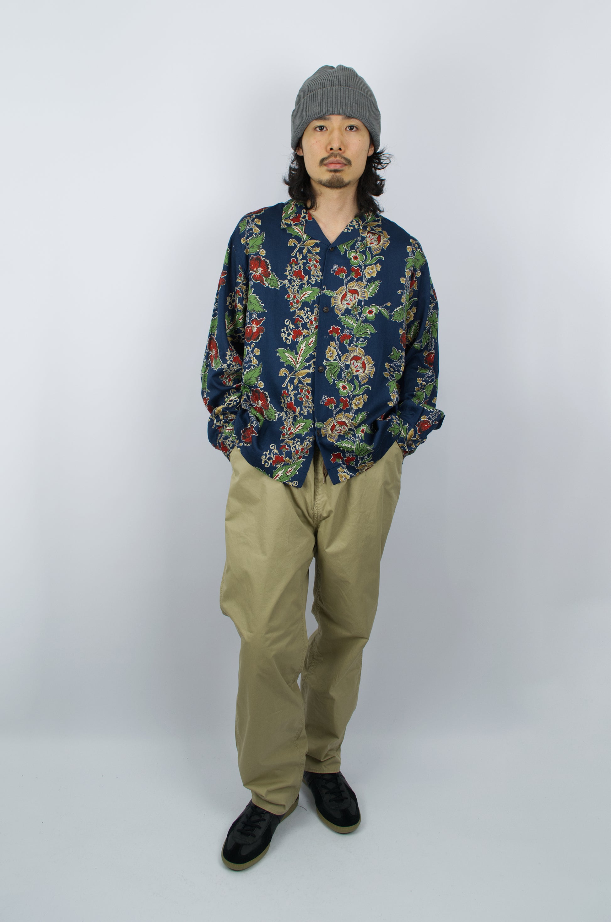 A graceful Summer Shirting option from H.Unit. The Open Collar Shit is made from a 100% Cotton Satin cloth with a block-print flower motif throughout. The Fabric is beautifully soft and drapey, ideal to be worn on it's own in the hotter months or layered nicely under a jacket for a pop of colour.
