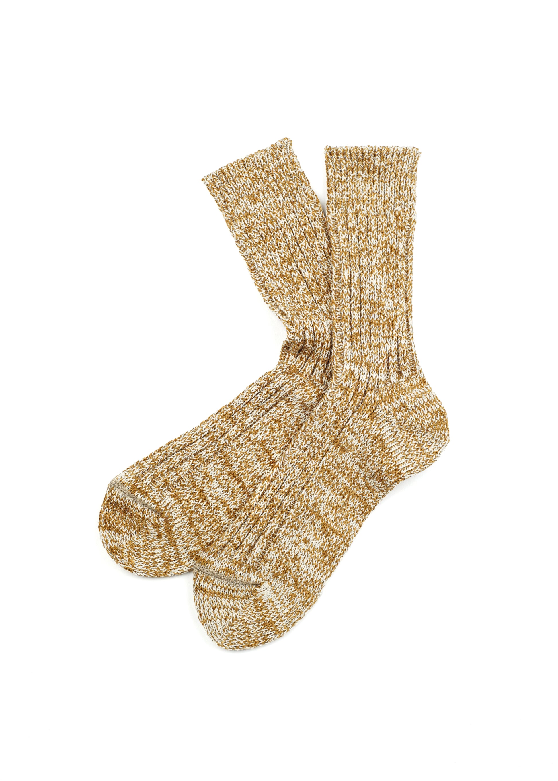 Rototo - Recycle Cotton Ribbed Crew Sock, Mustard / Ivory