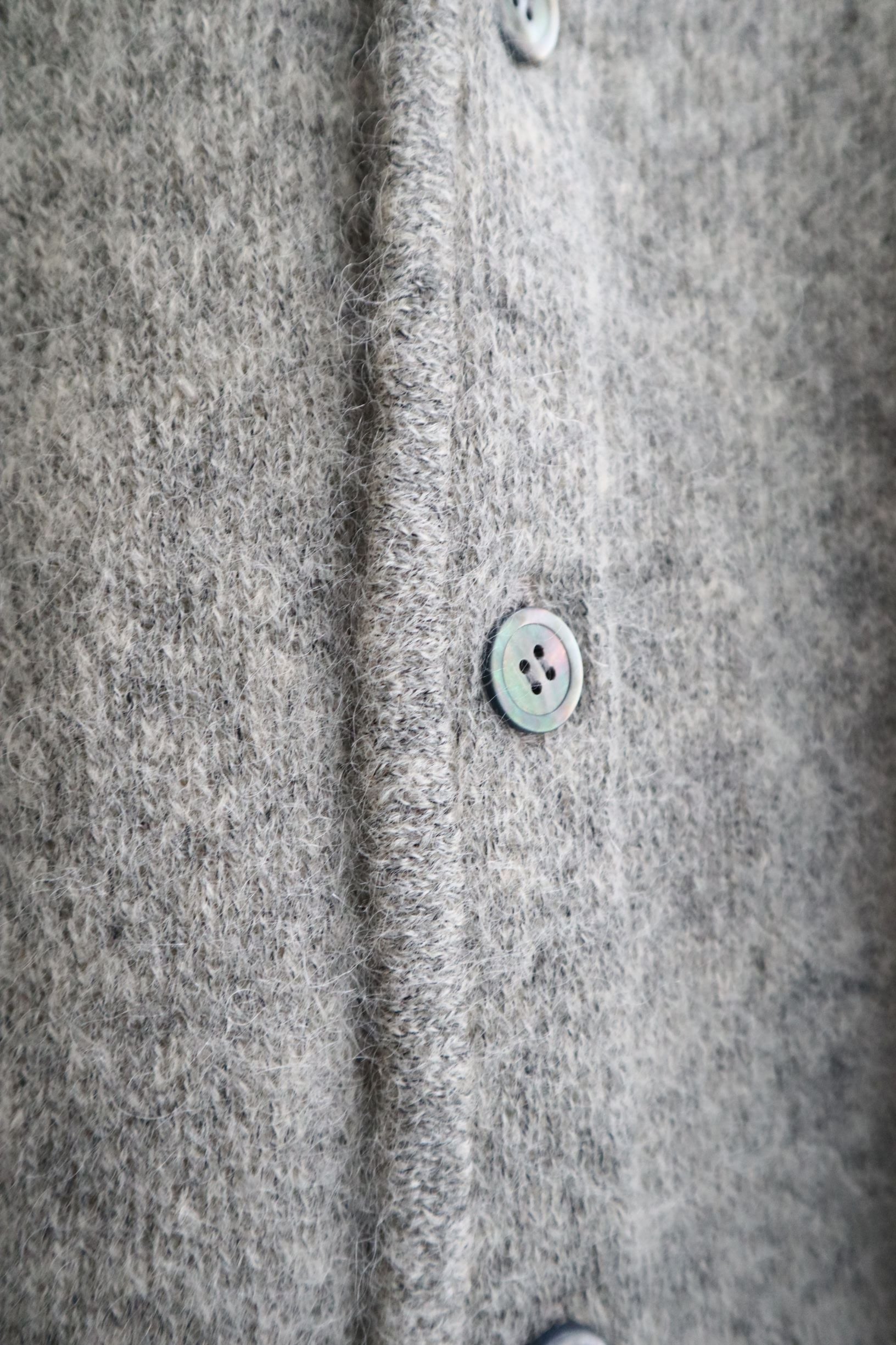 Soft and airy, this extra shaggy Mohair & Wool cardigan carries the charm of a vintage piece. Crafted from a delicate blend of mohair and wool, it offers a warm yet lightweight feel that gently envelops the body. A special treatment process enhances the natural softness of the mohair, creating a smooth texture that feels luxurious against the skin—without the itch.